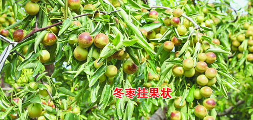 冬枣 9-10 月成熟,均 果重 20 克,大果 30 克,果 实近圆形,含糖量 29.8%,果 皮脆薄,果肉细腻,该品种 抗性好,生产上注意控制长 势,促其丰产。
