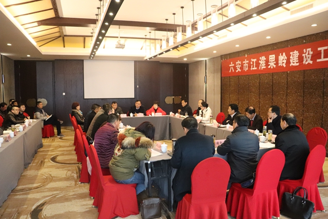 1月17日上午六安市召开了江淮果岭建设工作座谈会,市委常委、政法委书记高斌出席并主持会议。市政府副秘书长张兴香,市农委主任赵权,全国猕猴桃联盟主席西北农林科技大学安成立教授,省果树体系岗位专家、省农科院张金云研究员,省果树体系岗位专家、省农科院齐永杰博士,全国猕猴桃联盟秘书长高建军,市农委副主任谢申海、市茶谷办副主任赖红梅、省果树体系六安试验站站长、六安果树研究所所长柳士勇,以及来自六安市各县区的果树种植企业、大户代表共40多人参加了座谈会。